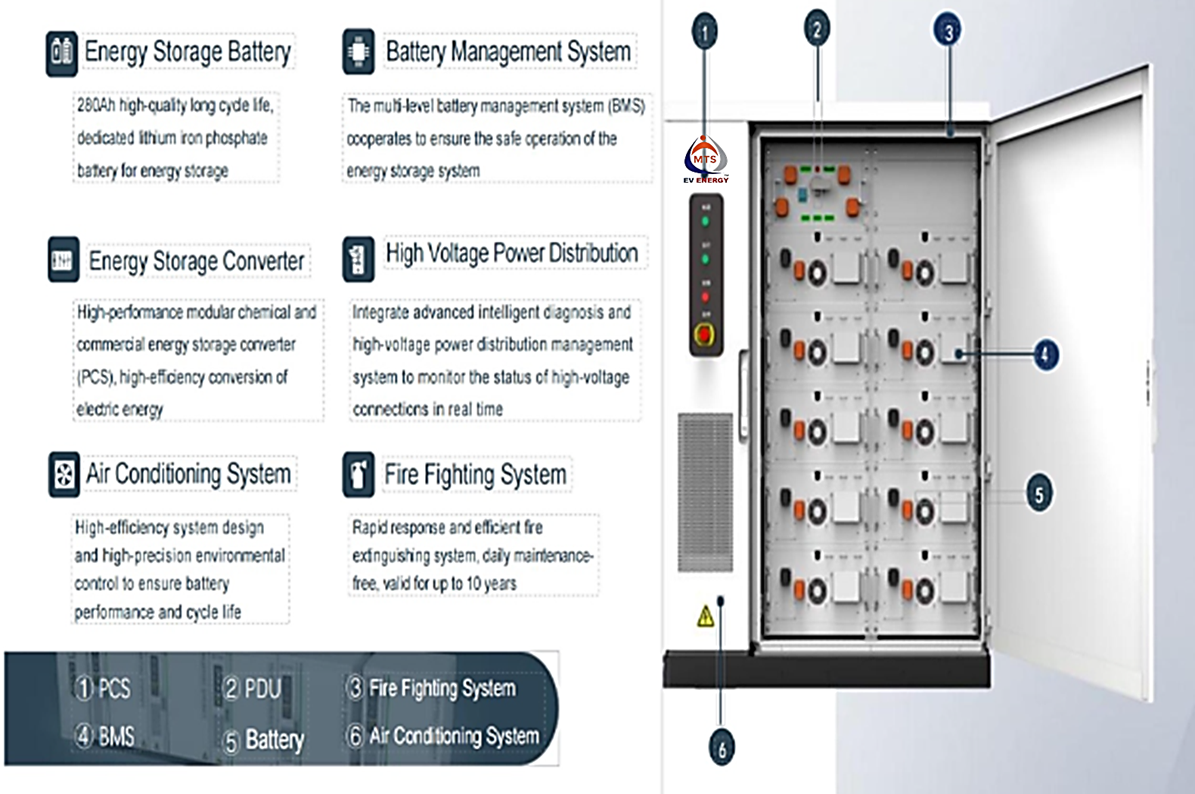 MTS EV Energy – Battery Energy Storage System (BESS) product can increase the charging capacity of a charging station by storing excess electricity when demand is low and releasing it when demand is high. This can help to avoid overloading the grid and reduce the need for costly grid upgrades. Our battery energy storage system for an EV charging station stores electricity to power charging stations and electric vehicles (EVs). It can also help stabilize the electrical grid or grid with limited power capacity.